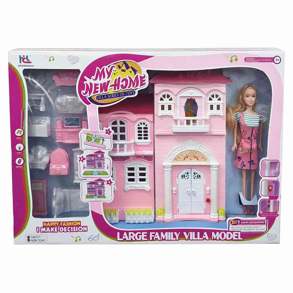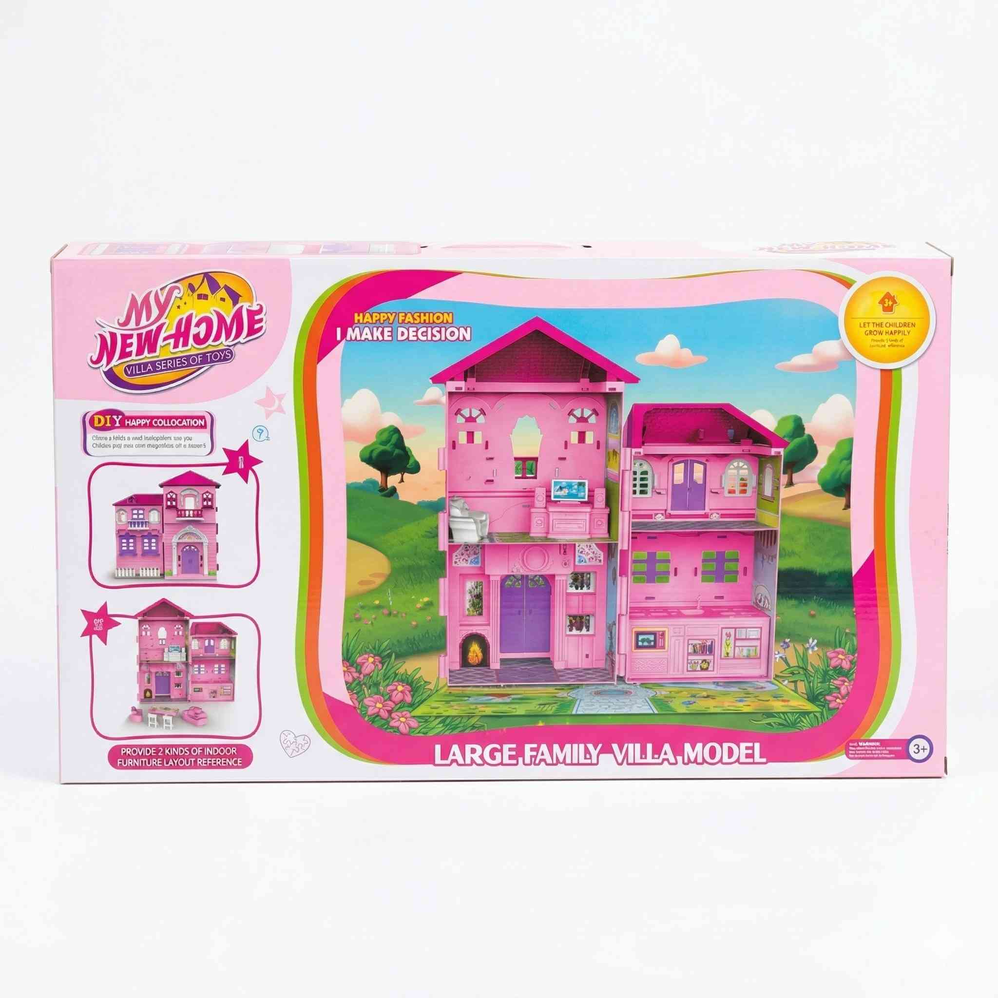 The My New Home Doll House Playset offers a complete play experience with a beautiful pink villa, a doll, and detailed furniture for endless fun 👑