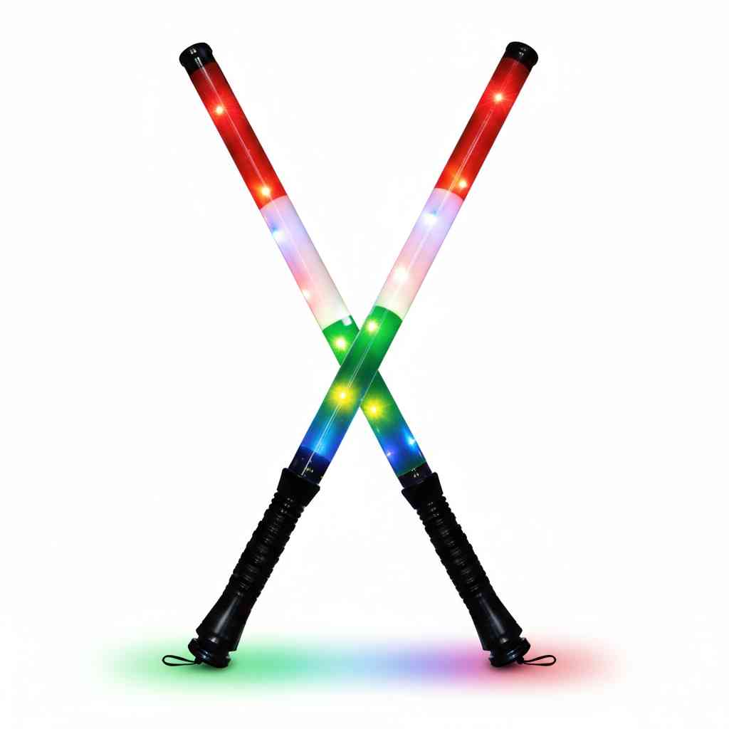 A vibrant pair of LED light stick inspired by the colors of the Kuwait national flag, creating an energetic and patriotic atmosphere for celebrations and special events. The stick feature multi-color LED lights (red, white, and green) with eye-catching lighting effects that stand out beautifully at night.