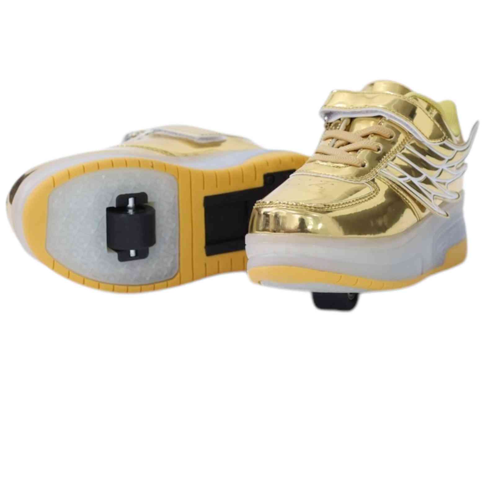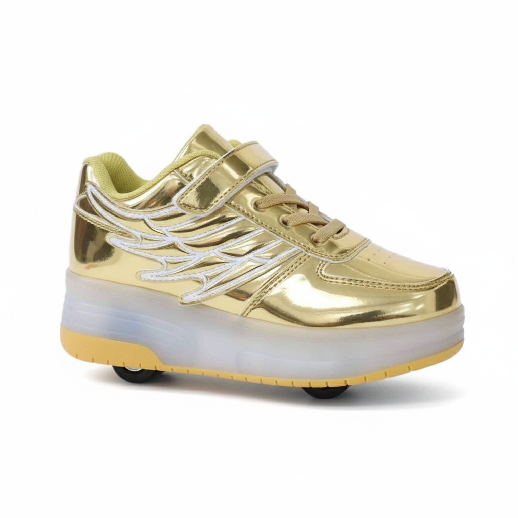 Shine bright while skating with the Size 34 LED Roller Skate Shoes in gold! These stylish roller skates feature built-in LED lights that light up with every movement, adding a fun and colorful glow. Perfect for kids who love to skate and stand out, these shoes offer both comfort and flair for an exciting ride!