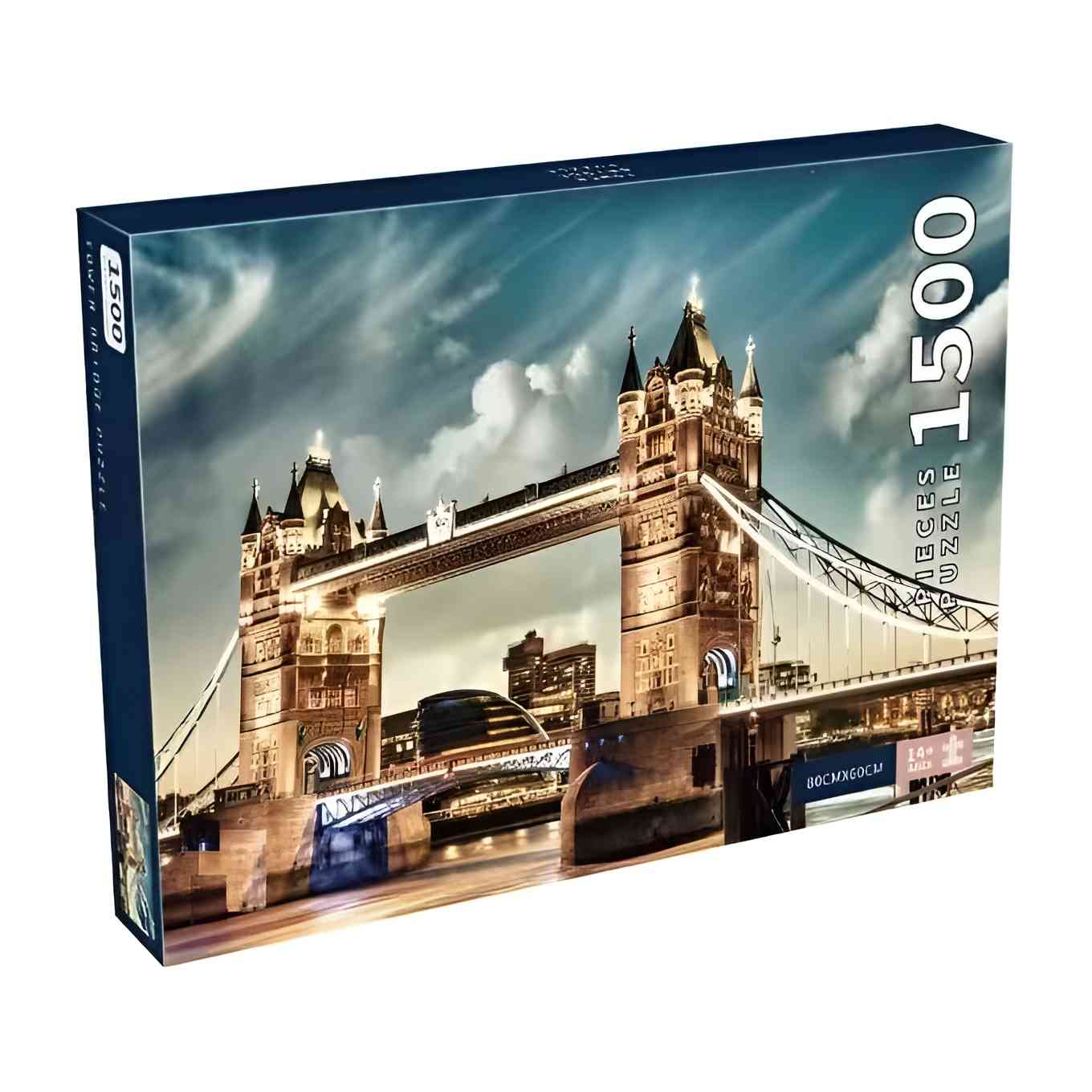 is related to 1500-piece jigsaw puzzles featuring the iconic Tower Bridge in London, England. These puzzles seem to be a popular product among puzzle enthusiasts and collectors.