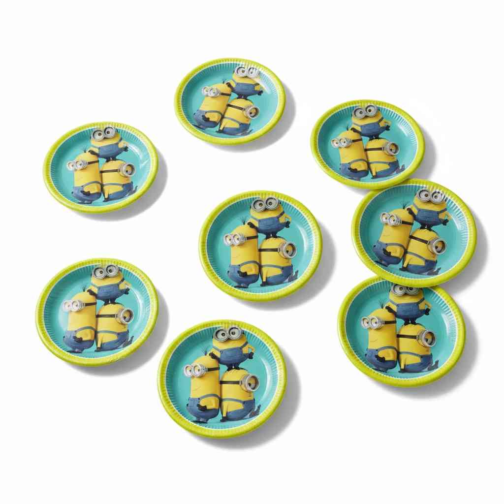 Lovely Minions paper plates, large 23cm size, perfect for kids' parties.