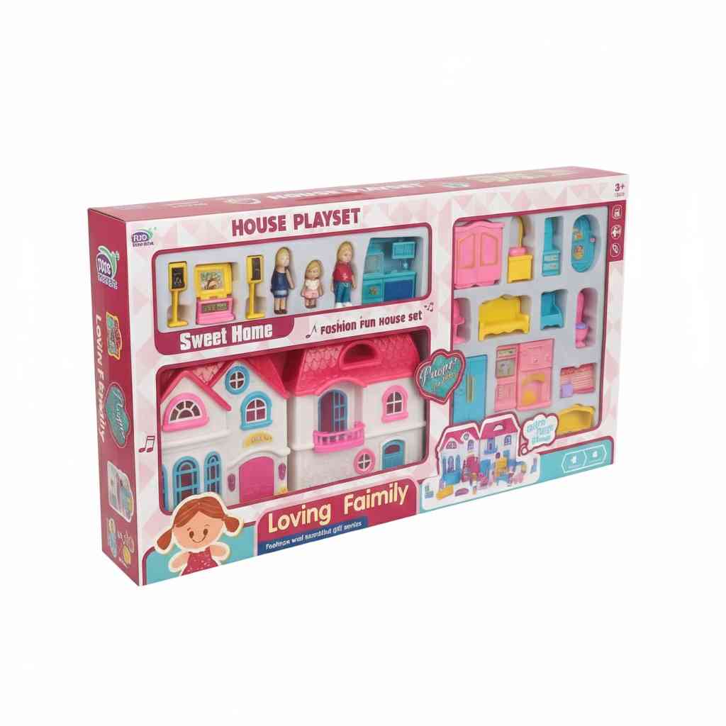 Bring family fun to life with the Loving Family Sweet Home Playset. This colorful two-story dollhouse comes complete with dolls, furniture, and accessories for endless role-play adventures. Children can arrange the living room, bedroom, and kitchen to design their own dream home while creating fun family stories. Featuring music and sound effects, this interactive playset adds excitement and realism to playtime. Perfect for encouraging imagination, storytelling, and social play, it’s an ideal gift for kids aged 3 years and above.