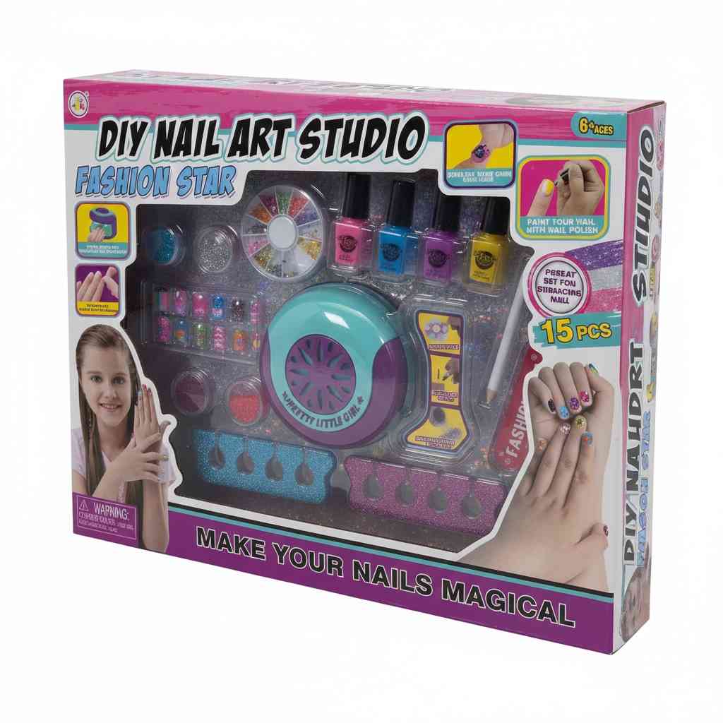 Magic Mani Sparkle Studio is a complete DIY nail art set that lets kids create colorful, sparkling, and stylish nail designs just like a real salon. The kit includes nail polish, glitter, stickers, gems, and a nail dryer to decorate and shine. With easy-to-use tools and fun accessories, children can design their own unique patterns, mix colors, and add sparkle to every nail. This creative playset helps develop imagination, fine motor skills, and artistic confidence. Made from safe, child-friendly materials and perfect for fashion-loving kids aged 6 years and above.