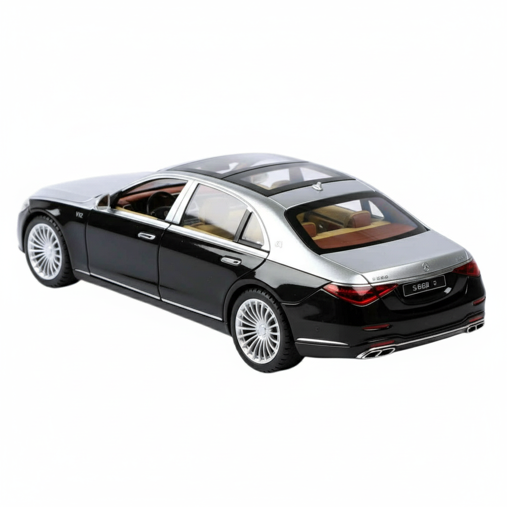 The 1:24 scale Mercedes-Benz Maybach S680 model car is a highly detailed replica crafted with precision and luxury in mind. Made from high-quality metal alloy, this model showcases the elegance and sophistication of the real Maybach. It features intricate details such as the signature front grille, realistic wheels, and refined interior design, giving it an authentic look and feel. Perfect for car enthusiasts and collectors alike, this model combines beauty, craftsmanship, and accuracy in one stunning display piece.