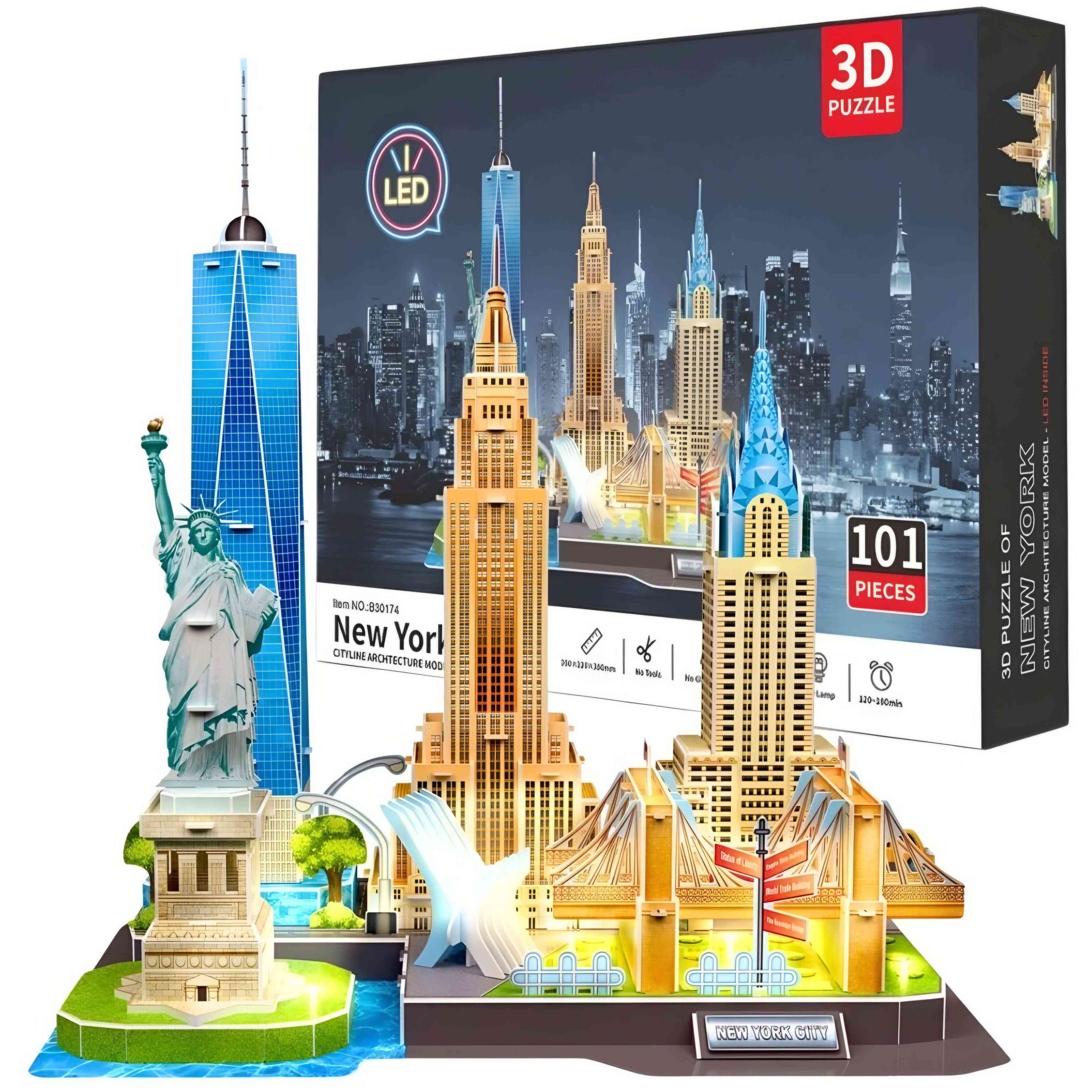 Experience the magic of New York with the LED 3D Puzzle Set! With 106 pieces, this puzzle lets you create a stunning 3D model of iconic New York landmarks, complete with LED lights that bring the city to life. Perfect for puzzle lovers and city enthusiasts, it offers hours of fun and a beautiful illuminated display once finished!