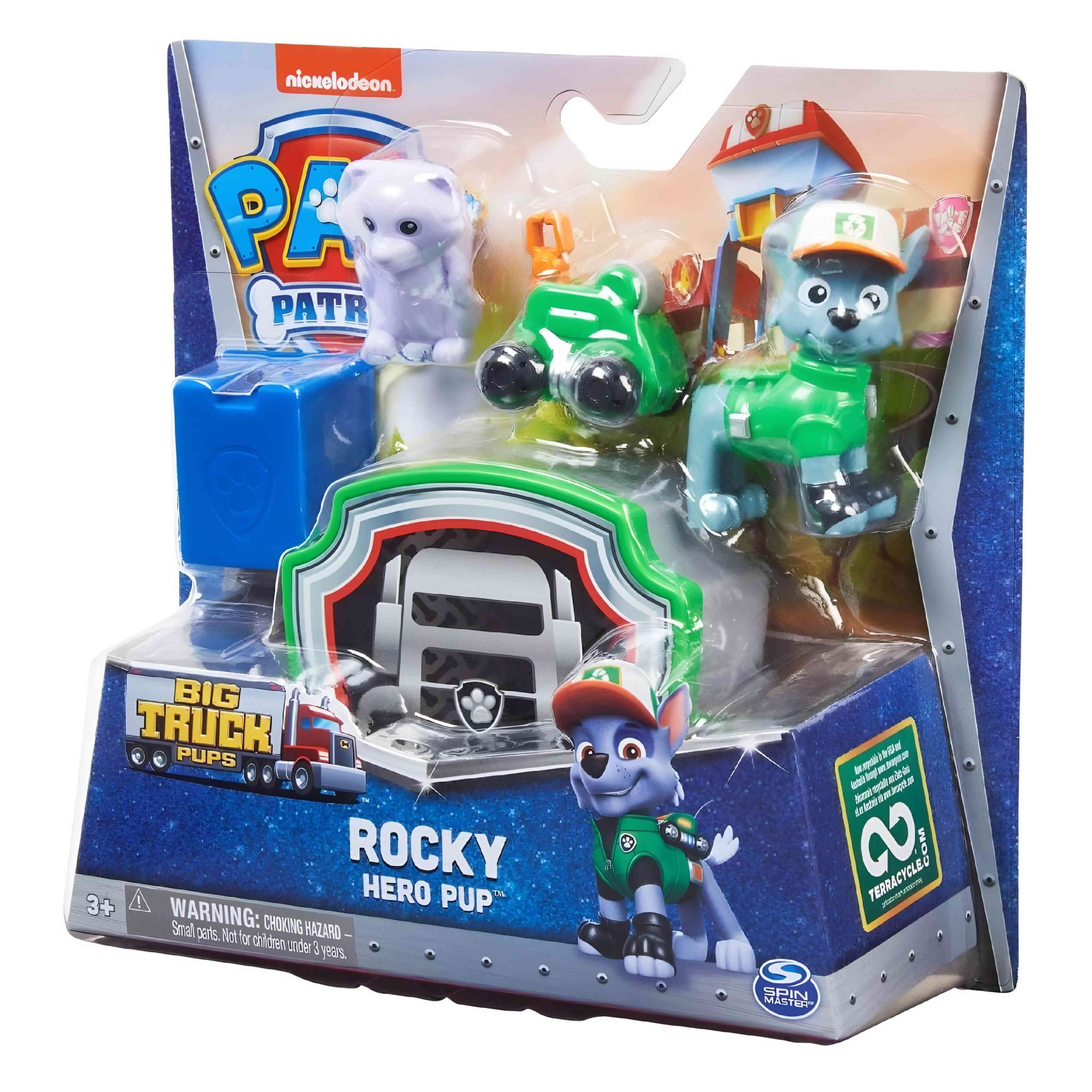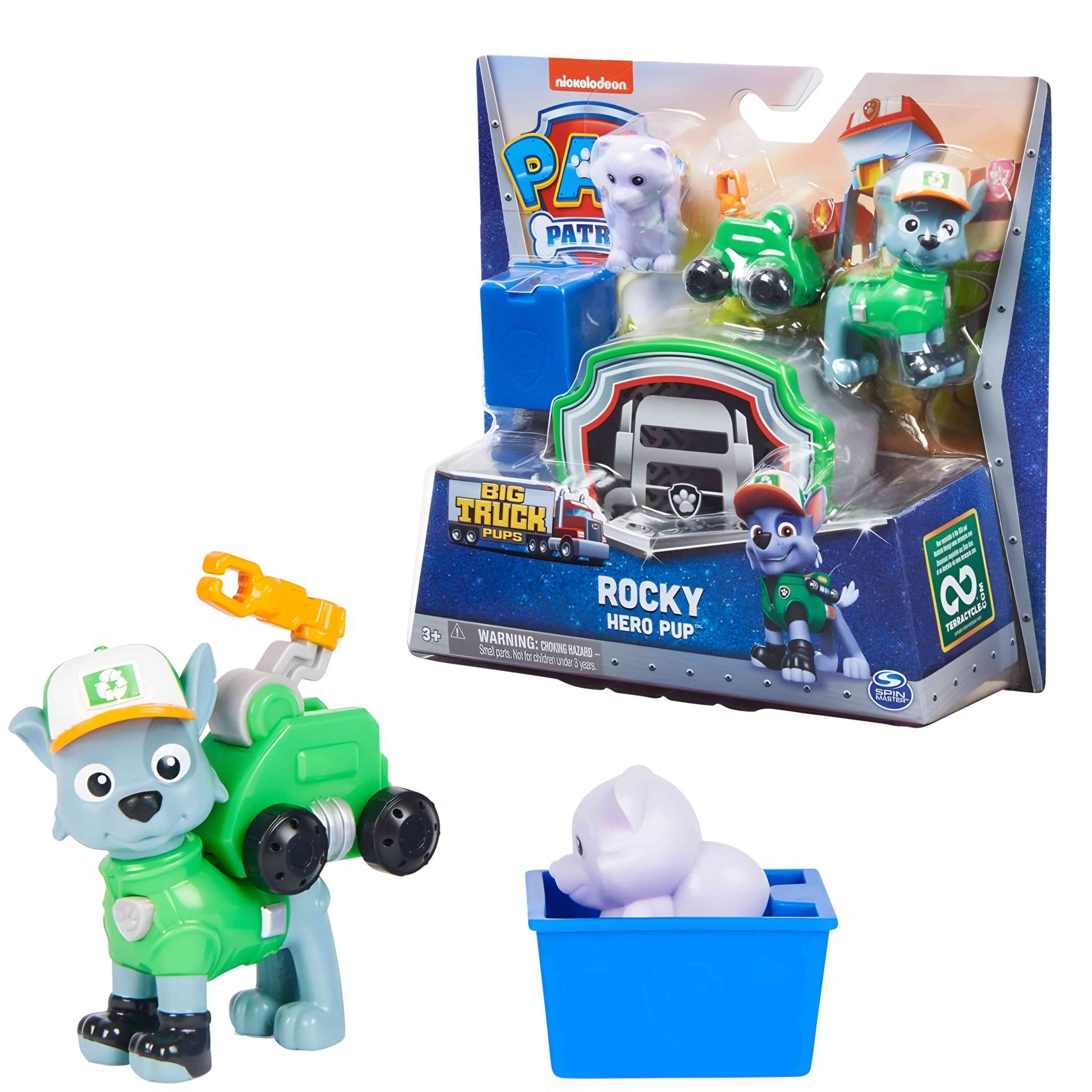 Join PAW Patrol’s Rocky on exciting rescue missions and relive your favorite moments from PAW Patrol: Big Truck Pups series! This exclusive Rocky figure set features realistic details and includes an animal friend to save, some rescue themed accessories and an awesome clip-on drone that can be attached to his backpack and then launches at the push of a button! When trouble strikes, pop on the rescue drone to prepare Rocky for action. When it’s time for an exciting rescue, press the badge on Rocky’s chest to launch the rescue drone, overcome obstacles and help save the day! After saving the day, pretend to watch the action on the Mobile Command Pod, which doubles as a carrying container for your toys when you’re on the go! Includes: 1 Rocky Figure, 1 Clip-on Drone, 1 Animal Friend, 1 Rescue Accessory, 1 Command Pod Container