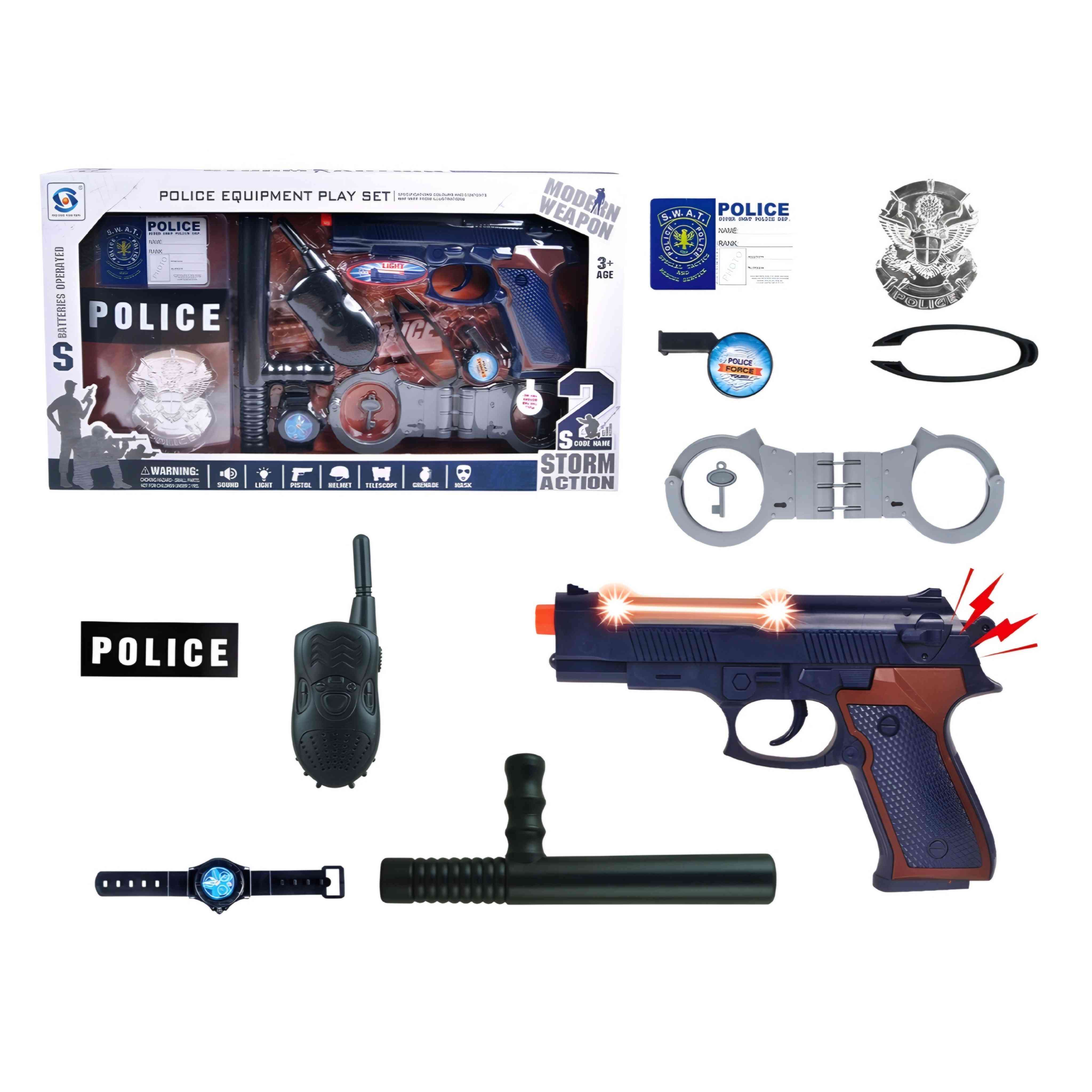 there are a variety of police-themed toy sets available that feature lights and sounds to enhance the play experience for children. These sets typically include different components such as police cars, helicopters, handcuffs, and other accessories to encourage imaginative role-play and exploration of law enforcement activities.
