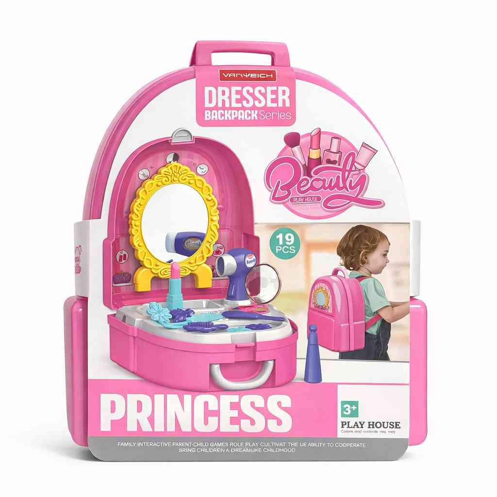 Let your little princess enjoy her own beauty salon experience! This backpack opens into a complete mini dressing table with a mirror and fun beauty accessories.