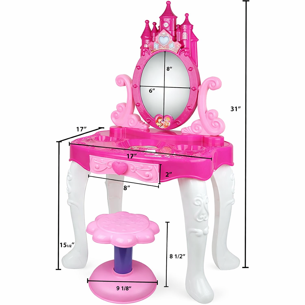 Let your little one enjoy magical dress-up moments with this Princess Beauty Vanity Playset. Designed with a charming pink castle theme, this playset features a vanity table with mirror, beauty accessories, and fun light & sound effects for an interactive experience. Perfect for imaginative play, role-playing, and developing creativity, it’s safe, lightweight, and easy to assemble. Ideal for kids aged 3 years and above. 💖