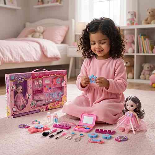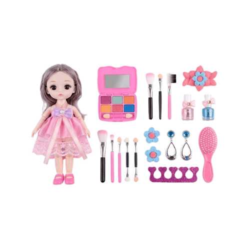 The Princess Makeup & Doll Set is perfect for every little girl who loves creativity and beauty, letting her shine with her favorite doll at the most magical imaginary parties.