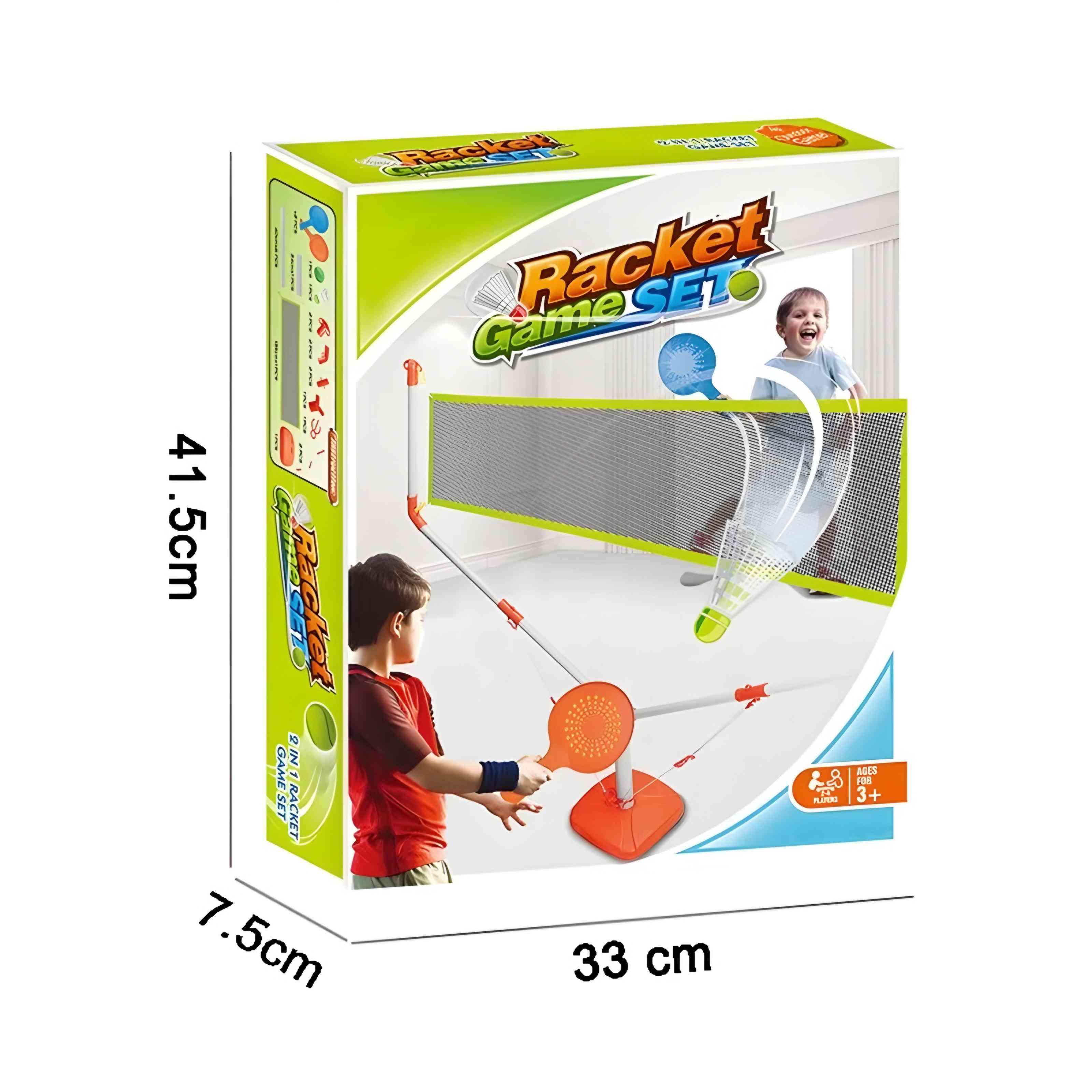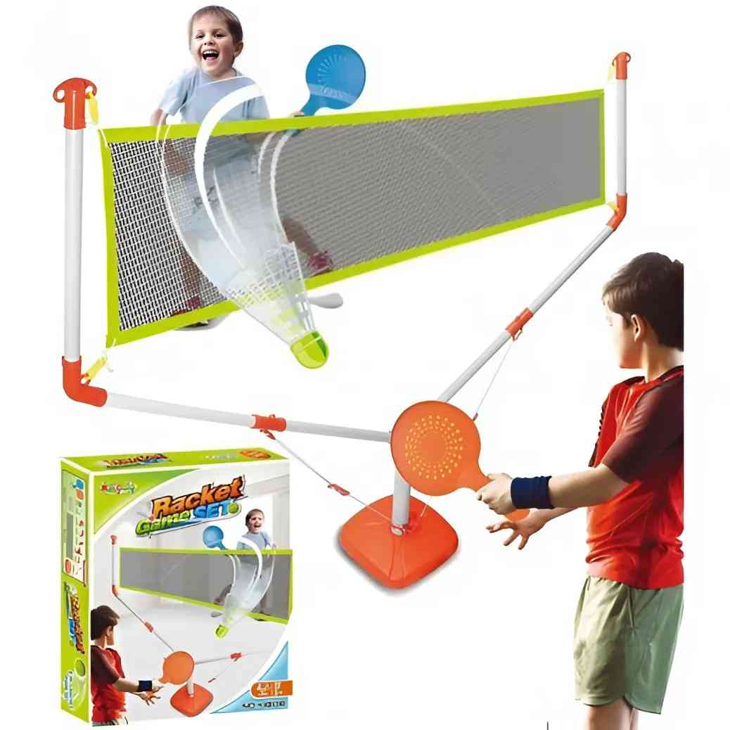 A racket game set typically includes a combination of equipment for playing various racket sports, such as tennis, badminton, or squash. Based on the search results provided, a common racket game set for children includes the following components: