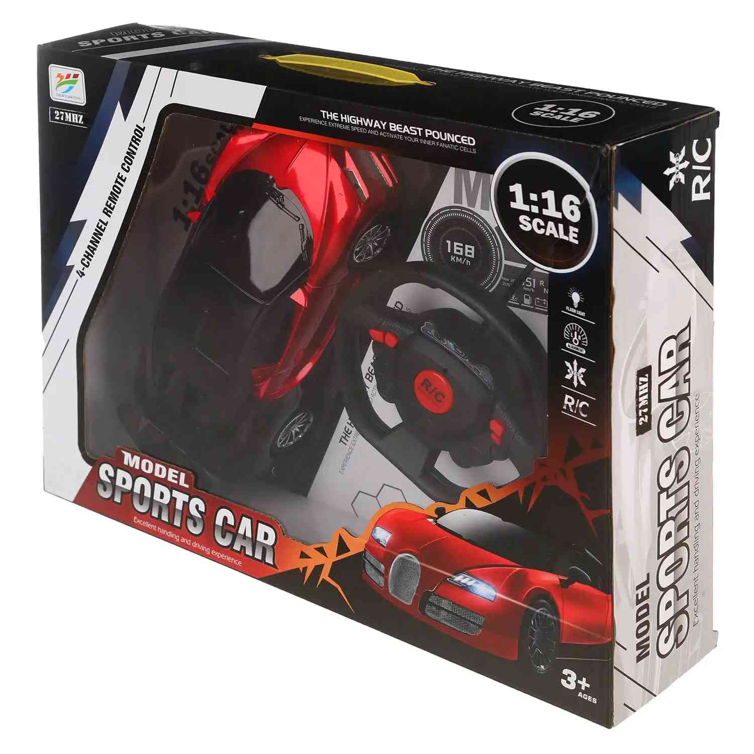 Red 1:16 remote control sports car—fast, flashy, and fun.