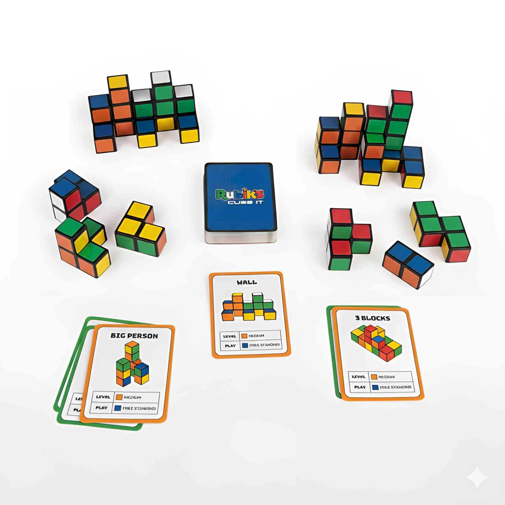 Rubik's Cube It is a 2-player block-building puzzle game where players race to recreate shapes from flipped cards. The game offers three difficulty levels: easy, medium, and hard. 1345 Players choose a level, flip a card, and then quickly try to build the matching shape using the provided blocks. It is the ultimate challenge for fans of puzzles and speed-building games.