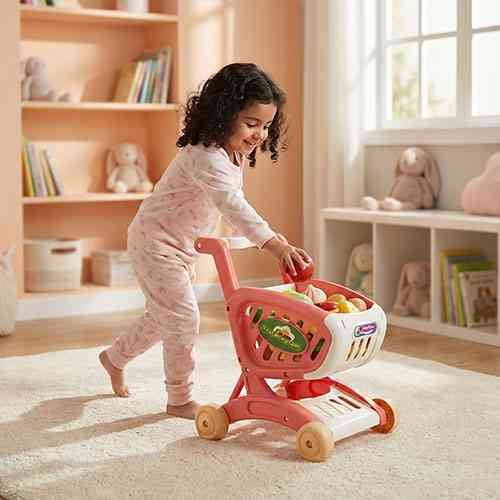 • Provides a realistic and enjoyable shopping experience with an easy-to-push trolley.