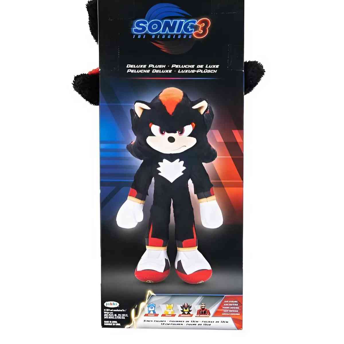 there is a 13-inch Deluxe Shadow plush figure inspired by the appearance of the character in the upcoming Sonic the Hedgehog 3 movie. The plush features accurate details like Shadow's signature red and black fur, and is designed to capture the character's enigmatic and powerful look from the film.