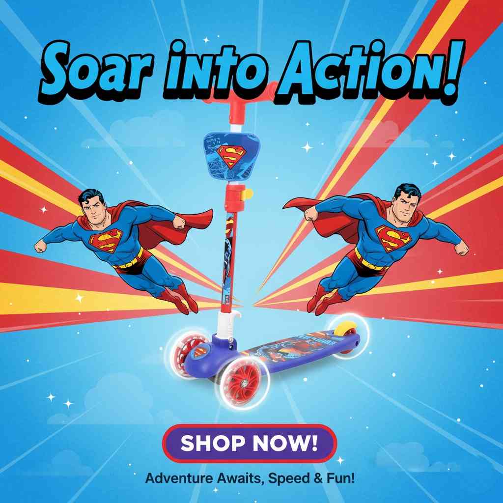Built from durable and lightweight materials, the Superman Kick Scooter is ideal for everyday outdoor adventures, helping kids stay active while having fun with their favorite superhero.