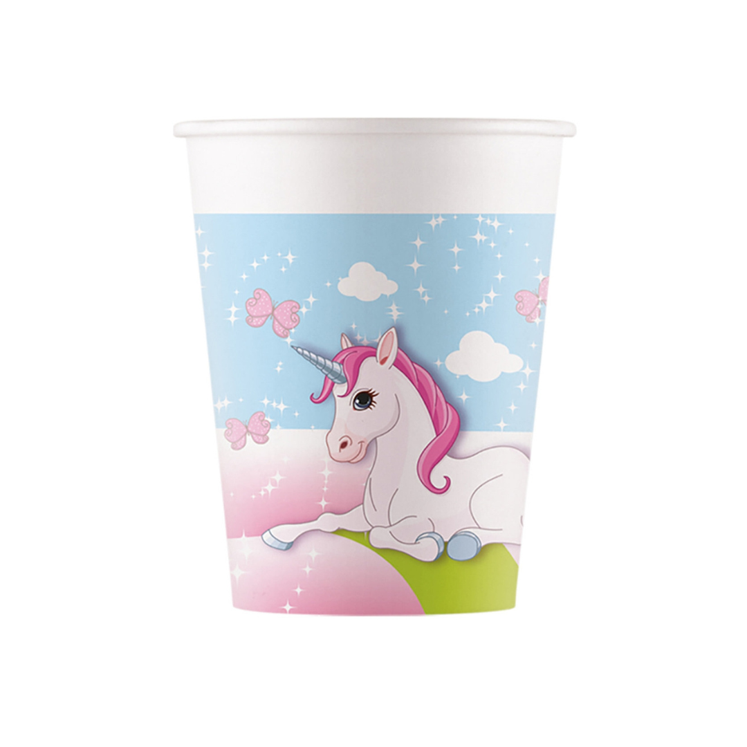 🥤 Enjoy magical drinks with these unicorn party paper cups! 8 cups for your little dreamers. 🦄💖
