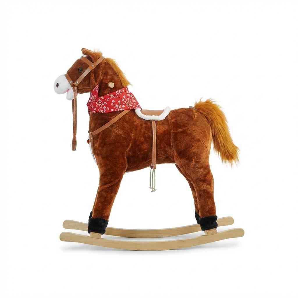 A classic and beautifully designed rocking horse with a soft plush body and sturdy wooden base, inspired by the western cowboy style. It features a comfortable saddle, reins, and a stable rocking frame that helps children enjoy safe and smooth riding. The soft fabric and friendly horse face make it perfect for toddlers and young kids, encouraging imaginative play and developing balance and coordination.